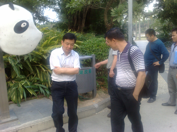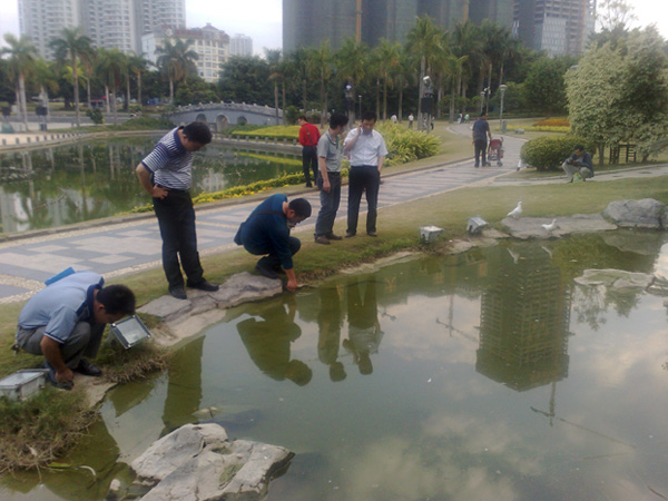 2011年11月28日,南寧市愛(ài)衛(wèi)辦常務(wù)副主任盧世偉一行到我市創(chuàng)衛(wèi)示范點(diǎn)及窗口單位進(jìn)行病媒防制專項(xiàng)檢查,圖為盧主任一行檢查康凈公司負(fù)責(zé)的示范點(diǎn)南寧市南湖南廣場(chǎng)病媒防治現(xiàn)場(chǎng)。